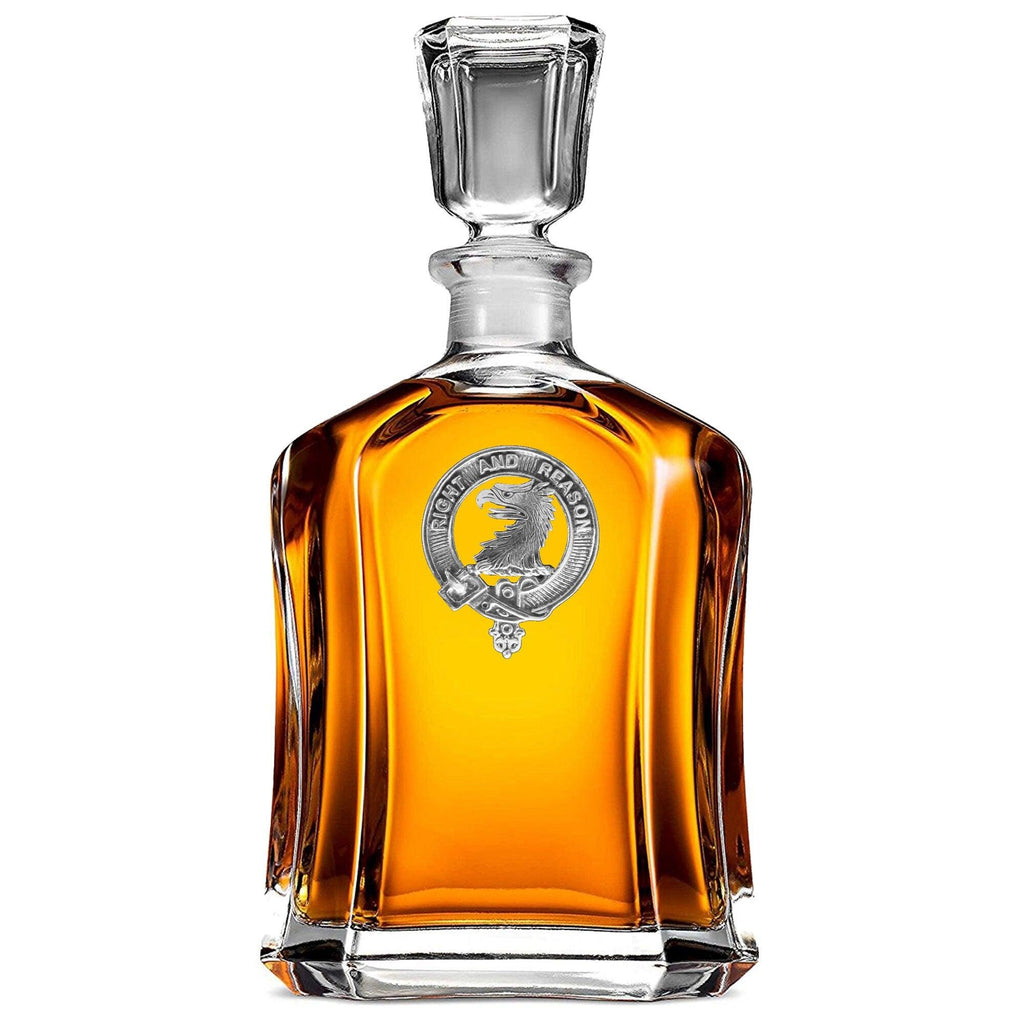 Show your proud Scottish heritage with our superb Clan "Skye" elegant decanter. Your pewter or sterling silver Clan crest badge is centrally mounted on the decanter.
