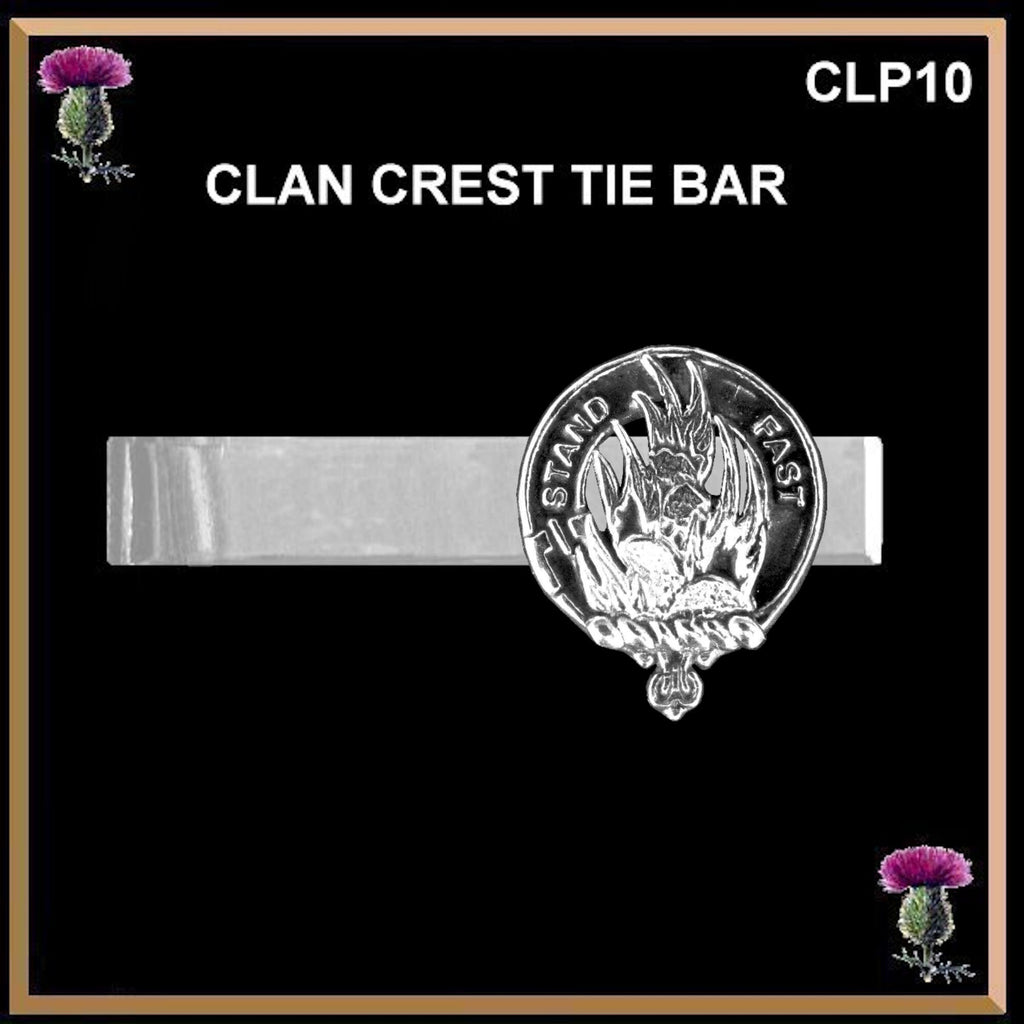 Your proud Scottish Clan heritage can be displayed by wearing your beautiful Scottish Clan clip tie bar. Each Clan tie bar is exquisitely handcrafted in high detail in lead free pewter or sterling silver and is mounted on a base metal tie bar. The Clan clip tie bar crest is 19.5 mm.