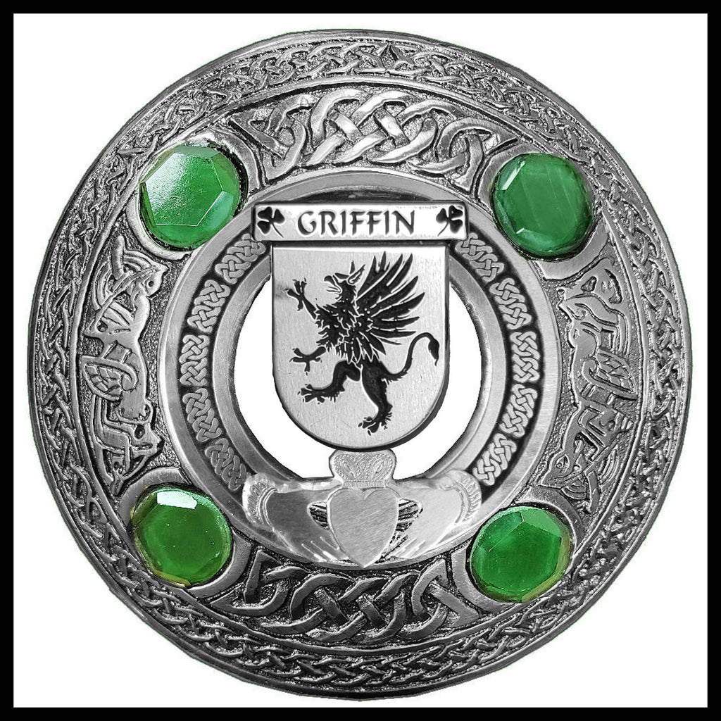 Griffin Irish Claddagh Coat of Arms Plaid brooch ~ Emerald stones
