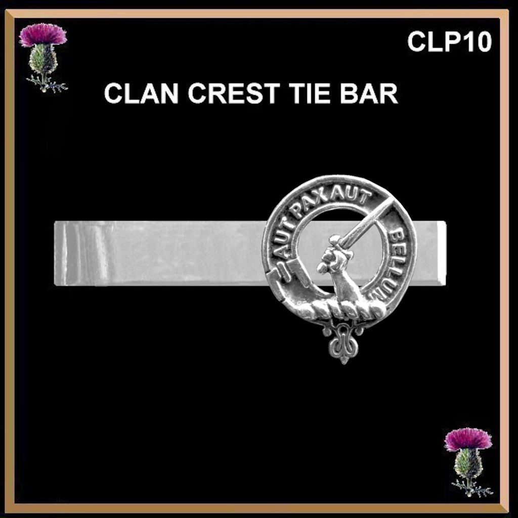 Your proud Scottish Clan heritage can be displayed by wearing your beautiful Scottish Clan clip tie bar. Each Clan tie bar is exquisitely handcrafted in high detail in lead free pewter or sterling silver and is mounted on a base metal tie bar. The Clan clip tie bar crest is 19.5 mm.