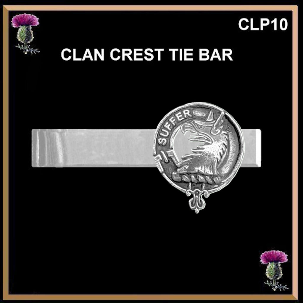 Your proud Scottish Clan heritage can be displayed by wearing your beautiful Scottish Clan clip tie bar. Each Clan tie bar is exquisitely handcrafted in high detail in lead free pewter or sterling silver and is mounted on a base metal tie bar. The Clan clip tie bar crest is 19.5 mm.