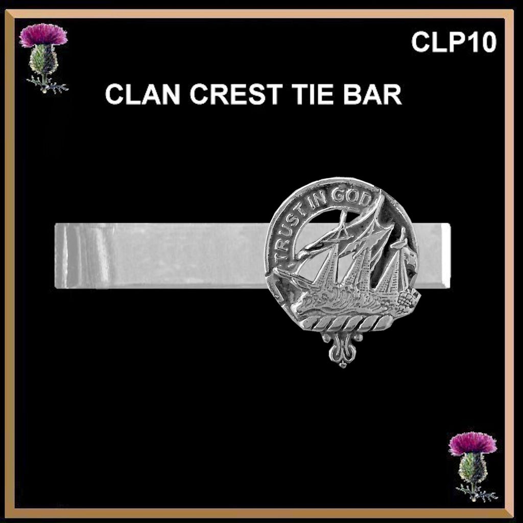 Your proud Scottish Clan heritage can be displayed by wearing your beautiful Scottish Clan clip tie bar. Each Clan tie bar is exquisitely handcrafted in high detail in lead free pewter or sterling silver and is mounted on a base metal tie bar. The Clan clip tie bar crest is 19.5 mm.
