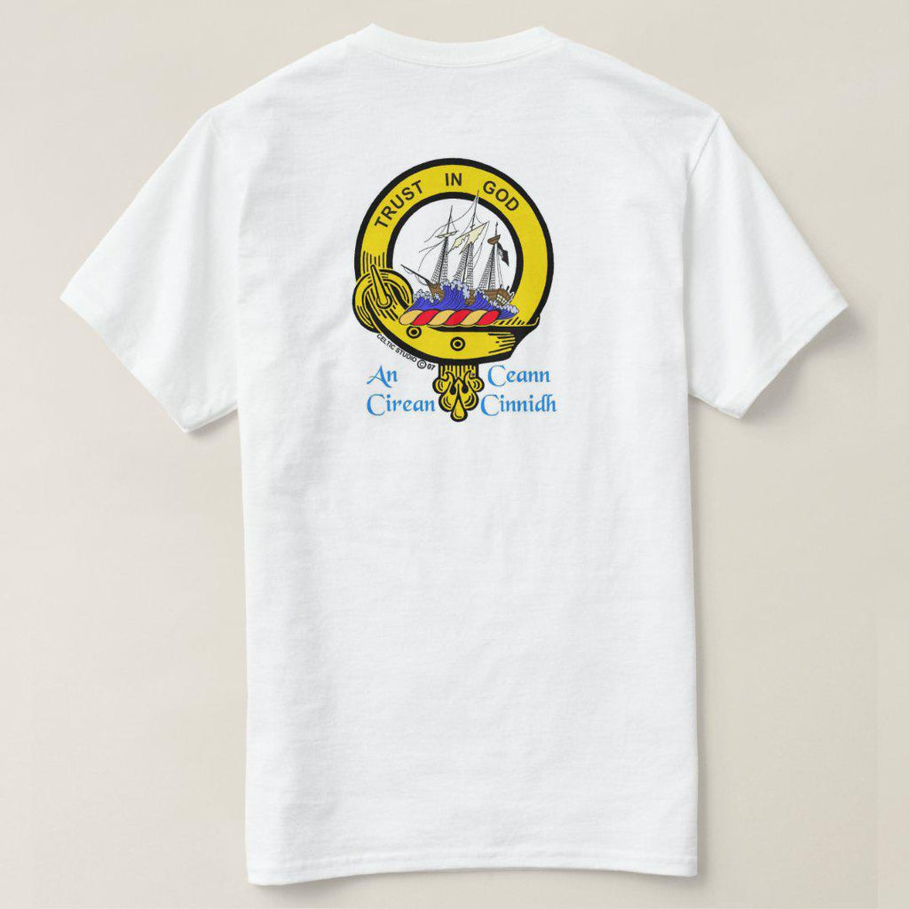 Display your Scottish heritage with pride on one of our white t-shirts featuring your own full colour Clan crest. Made of 100% pre-shrunk heavy weight cotton, these are of superior quality.