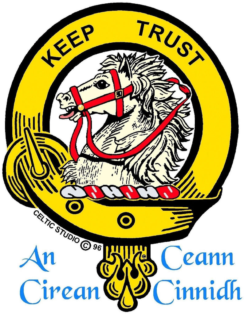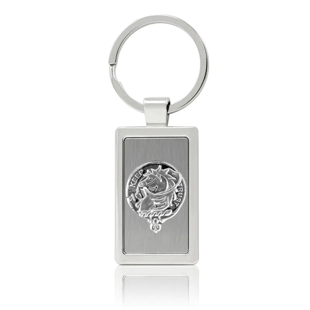Your proud Scottish heritage can be displayed with this beautiful Clan crest stainless steel key ring. This Clan key ring is available with either a pewter or sterling silver Clan crest. The clan crest has been designed and manufactured entirely by Celtic Studio in Canada for generations.