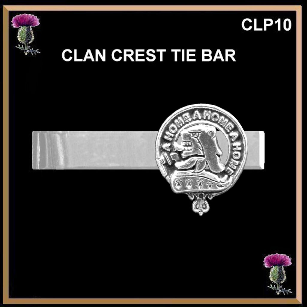 Your proud Scottish Clan heritage can be displayed by wearing your beautiful Scottish Clan clip tie bar. Each Clan tie bar is exquisitely handcrafted in high detail in lead free pewter or sterling silver and is mounted on a base metal tie bar. The Clan clip tie bar crest is 19.5 mm.