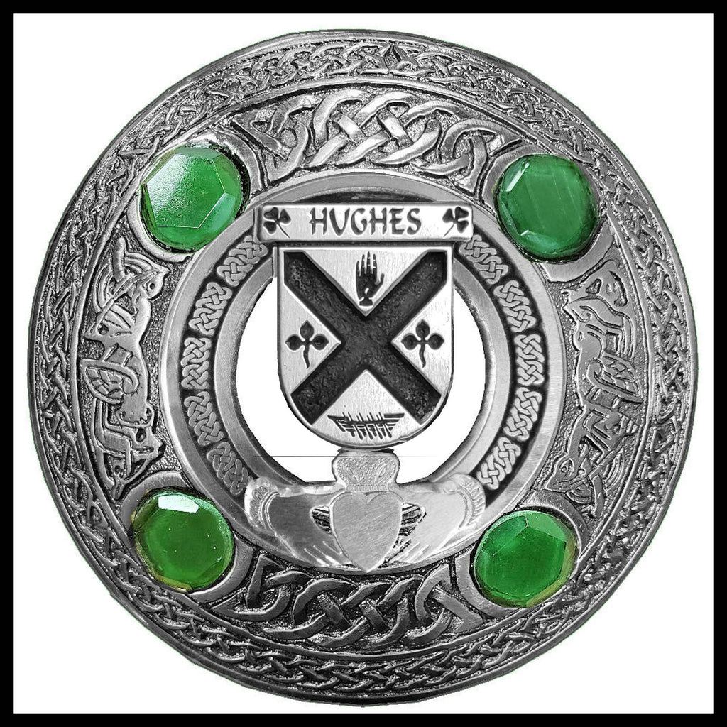 Hughes Irish Claddagh Coat of Arms Plaid brooch ~ Emerald stones
