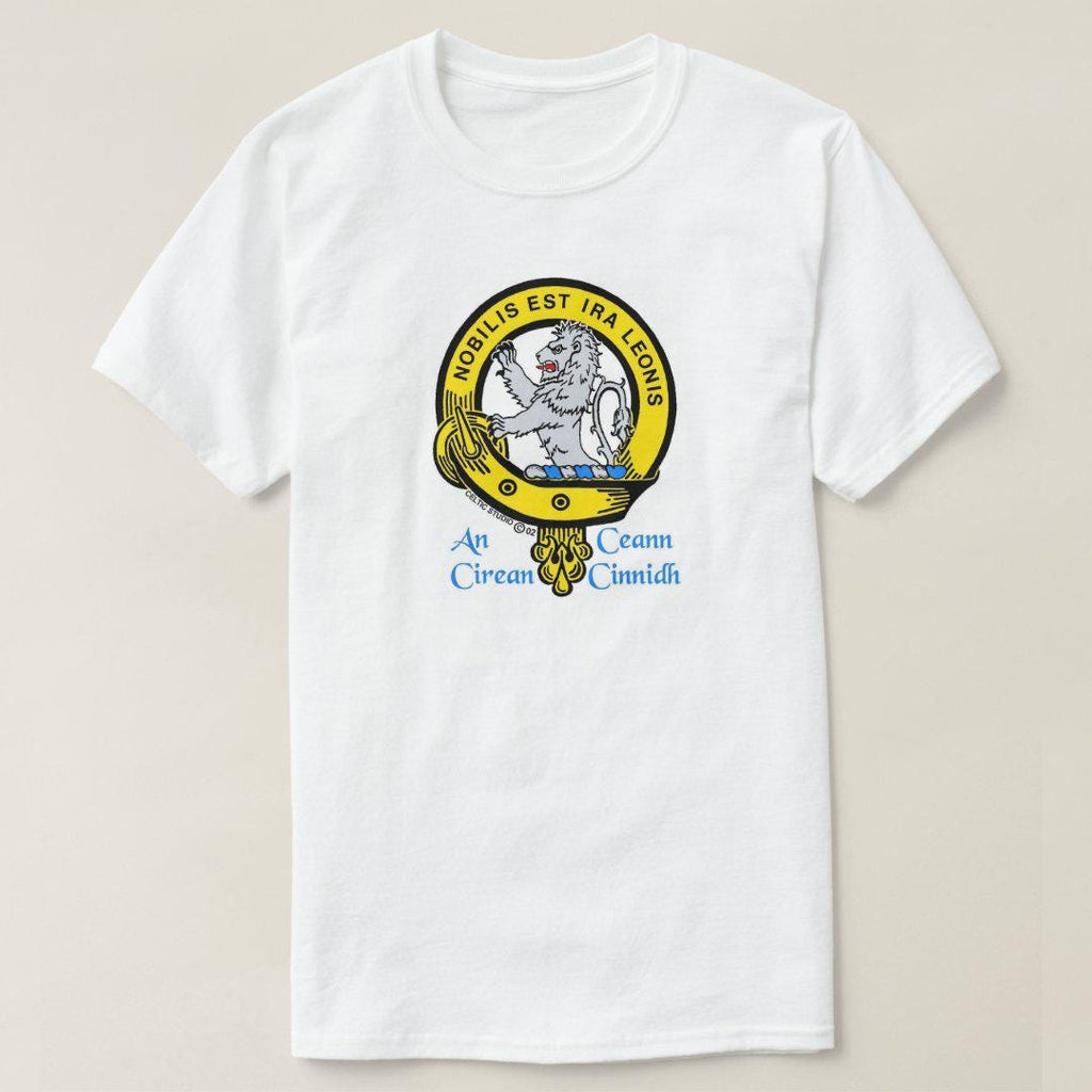 Display your Scottish heritage with pride on one of our white t-shirts featuring your own full colour Clan crest. Made of 100% pre-shrunk heavy weight cotton, these are of superior quality.