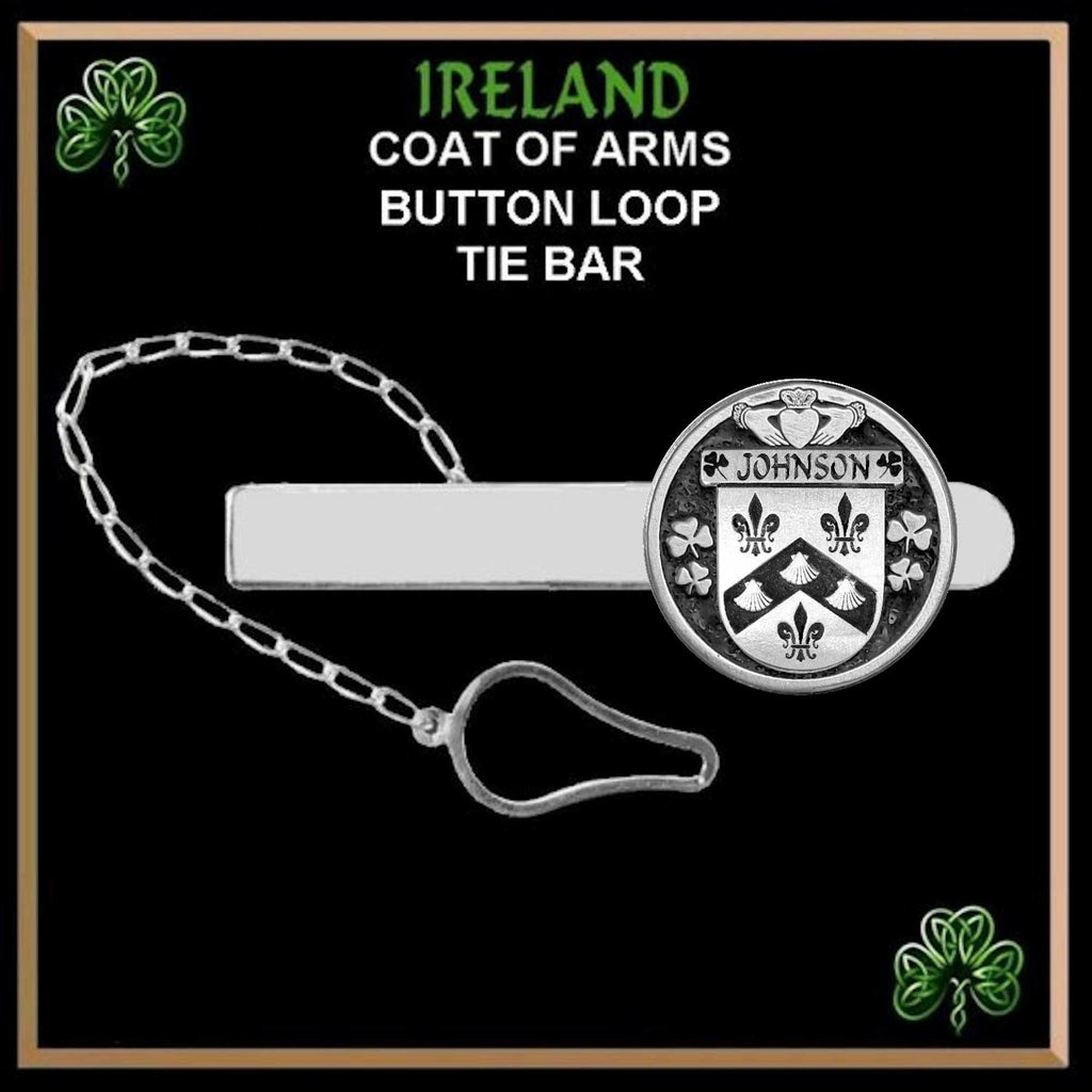 Johnson Irish Coat of Arms Disk Loop Tie Bar ~ Sterling silver