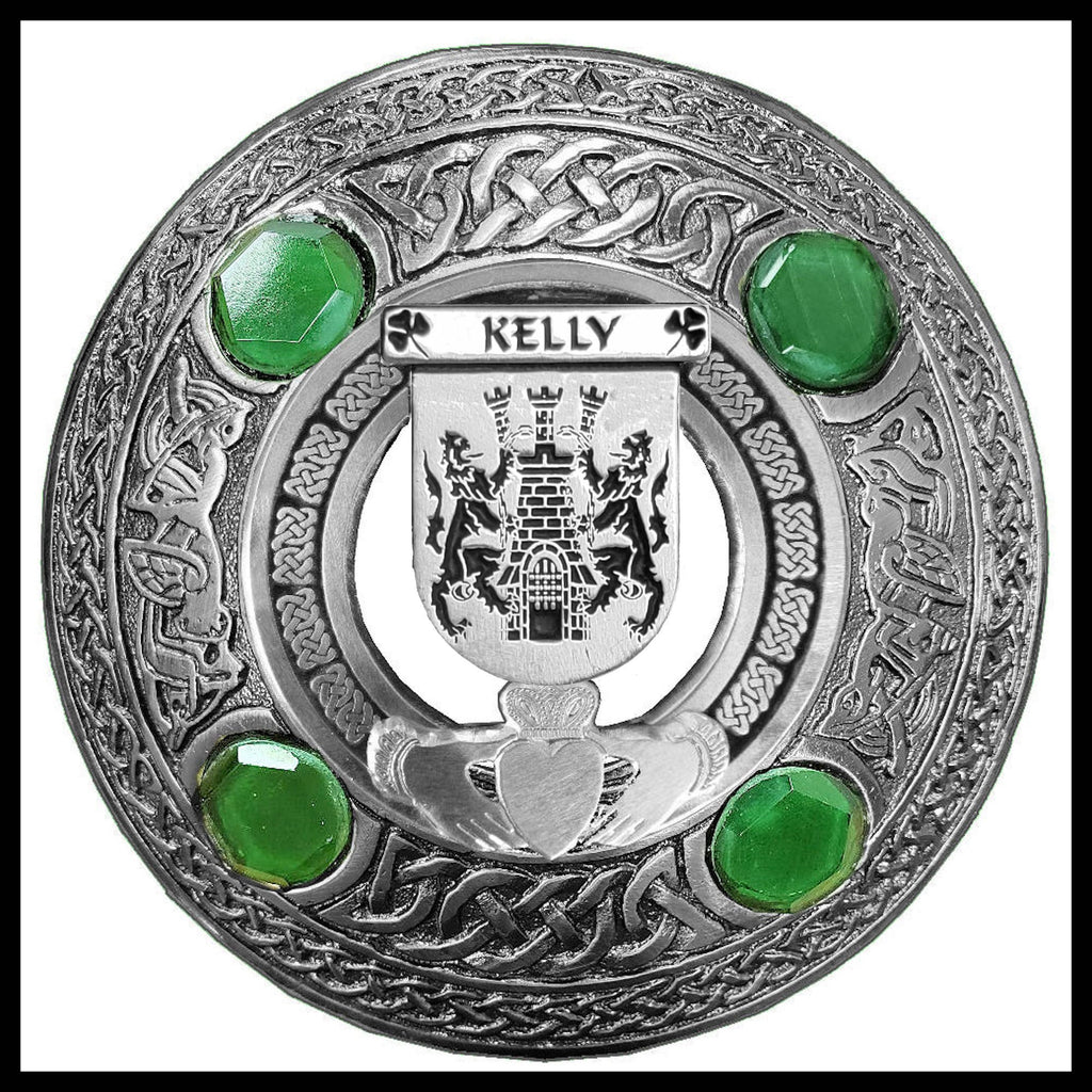 Kelly Irish Claddagh Coat of Arms Plaid brooch ~ Emerald stones
