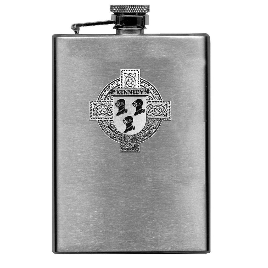 Kennedy Irish Celtic Cross Badge 8 oz. Flask Green, Black or Stainless