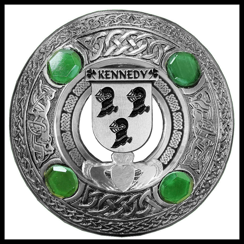 Kennedy Irish Claddagh Coat of Arms Plaid brooch ~ Emerald stones