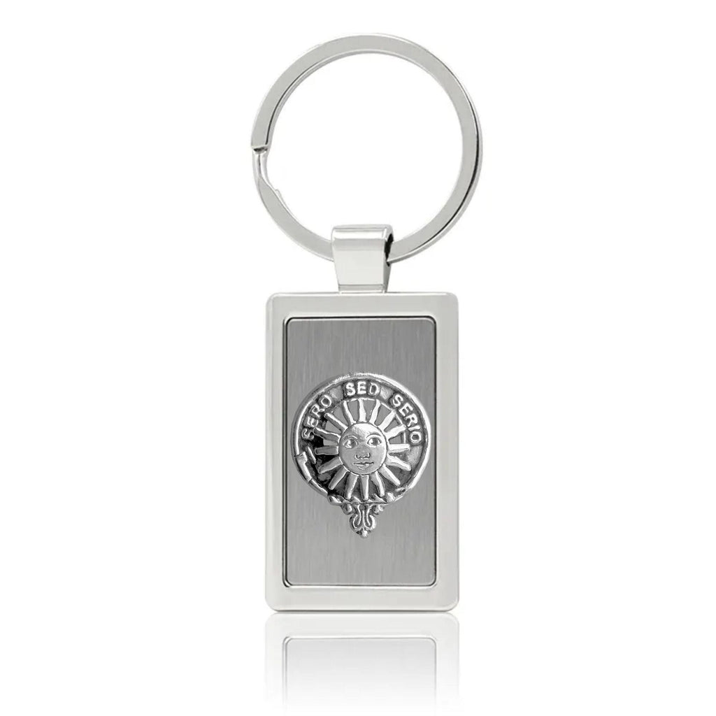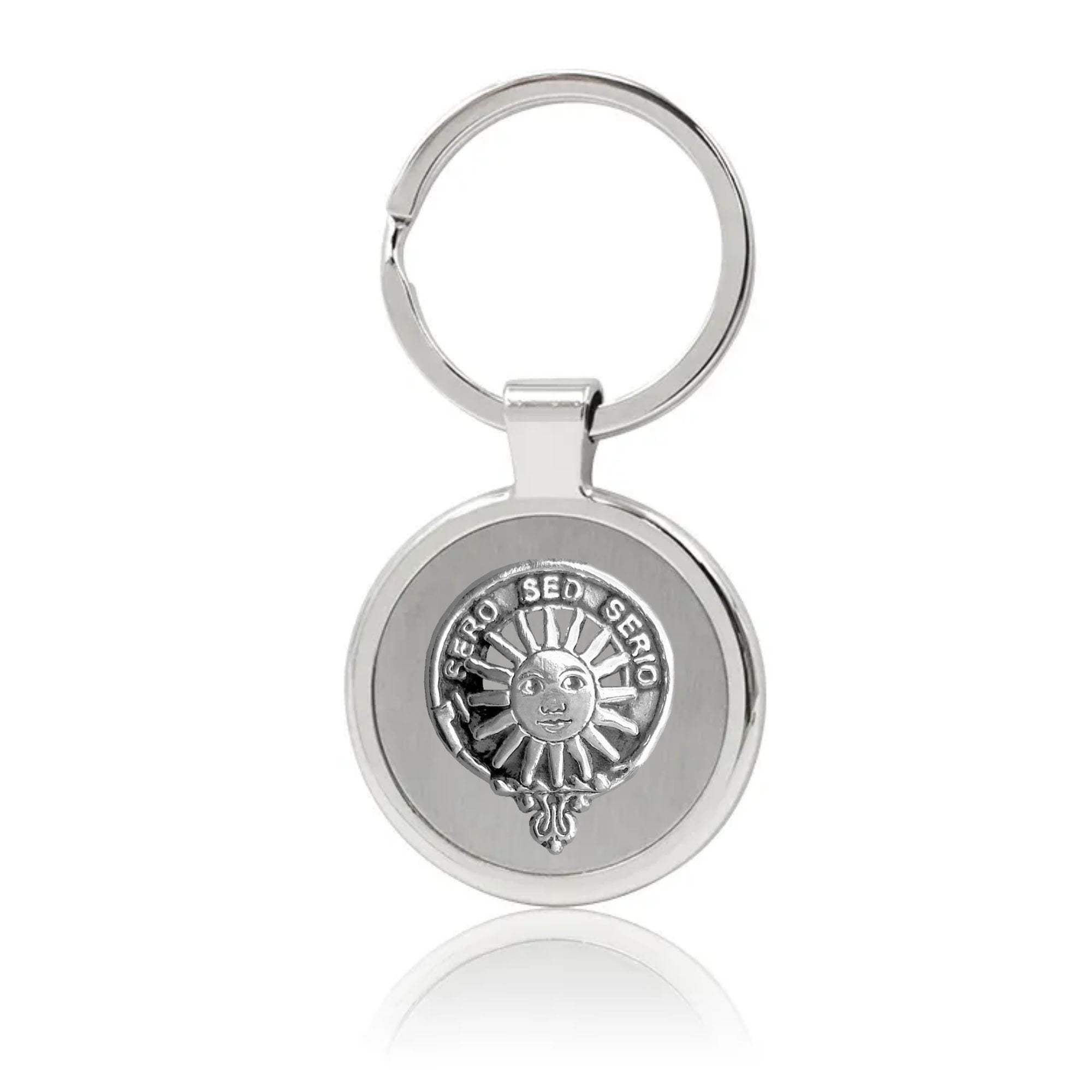 Your proud Scottish heritage can be displayed with this beautiful Clan crest stainless steel key ring. This Clan key ring is available with either a pewter or sterling silver Clan crest. The clan crest has been designed and manufactured entirely by Celtic Studio in Canada for generations.