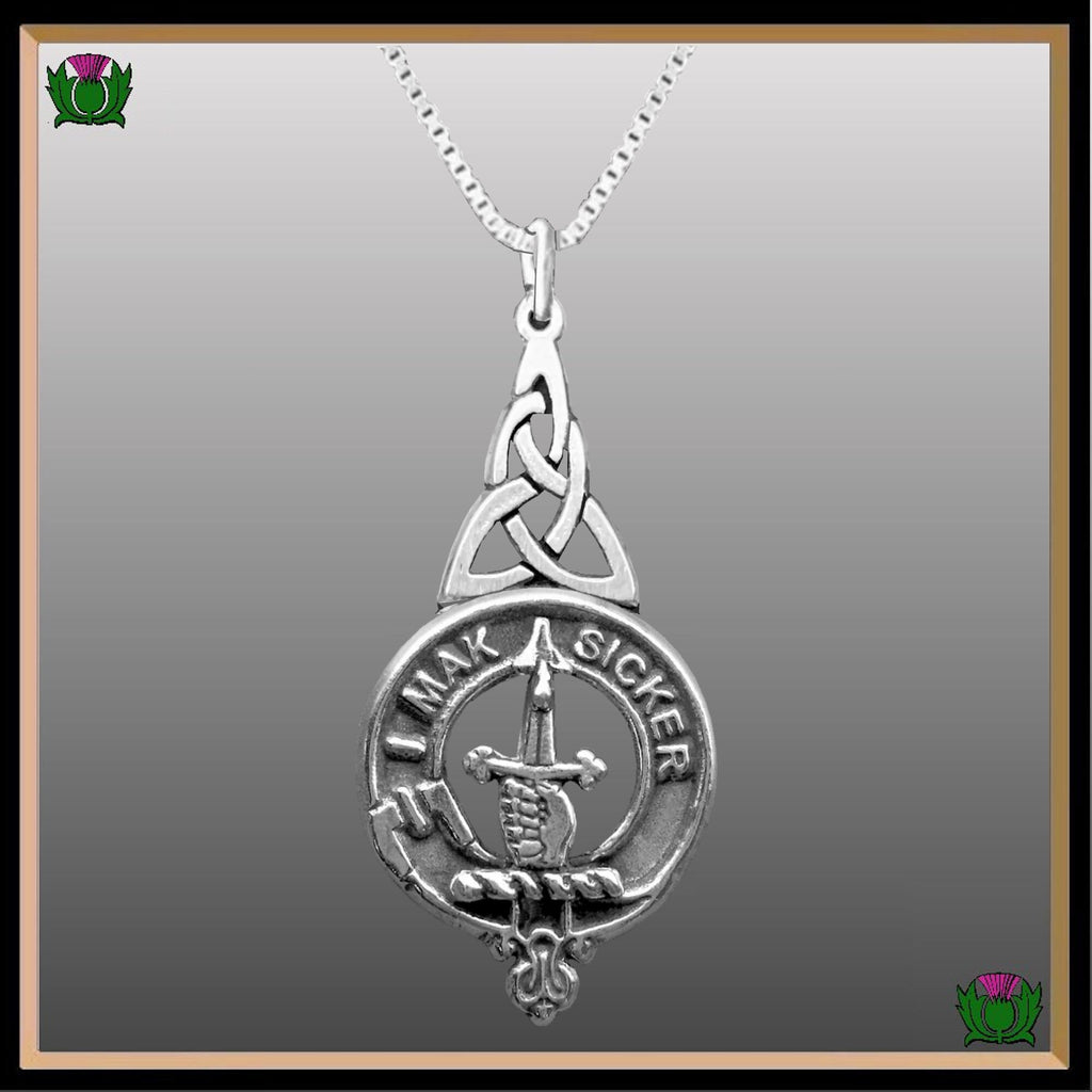 Your proud Scottish Clan heritage can be displayed through this beautiful Clan pendant. This exquisite Celtic interlace pendant is a beautifully elegant way to show your Clan crest.
