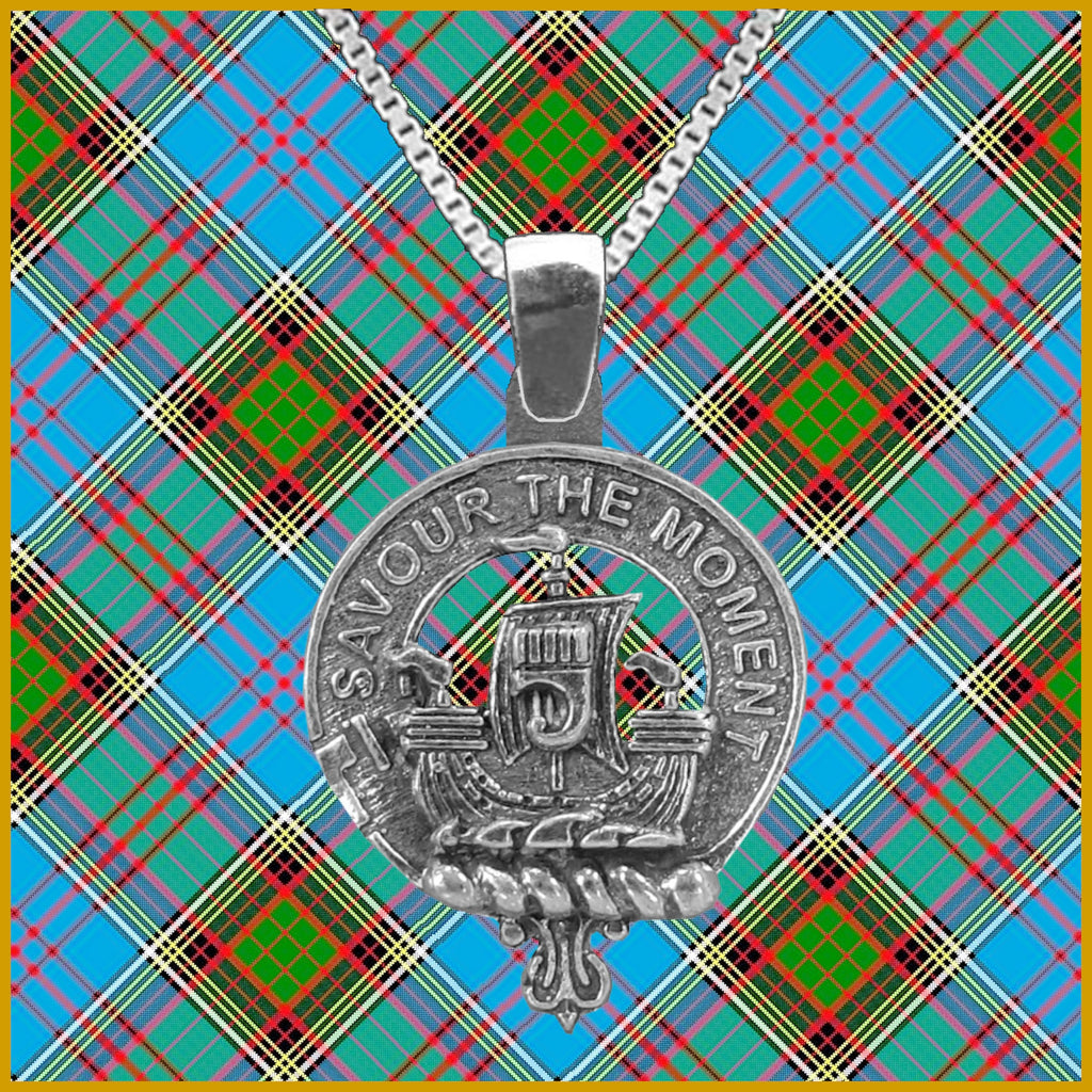 Your proud Scottish heritage can be displayed by wearing this beautiful sterling silver or gold Clan crest pendant. Each Clan design is exquisitely handcrafted in high detail in sterling silver or gold. For both the sterling silver and gold pendant there is an optional Italian made sterling silver medium weight box link chain available in a few lenght options: 45.72 cm (18"), 50.8 cm (20"), 55.8 cm (22"), or 61 cm (24"). If you are interested in a gold chain please send us a message.