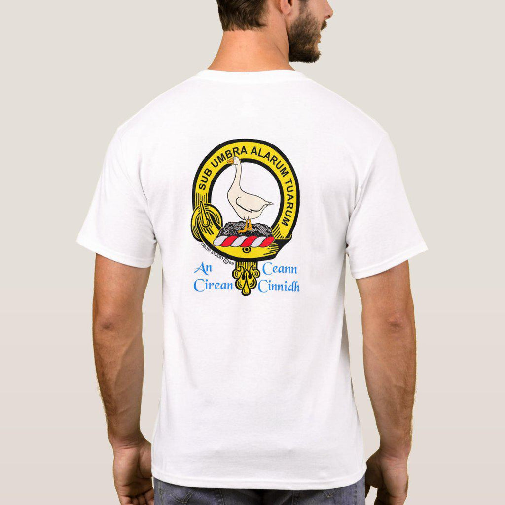 Display your Scottish heritage with pride on one of our white t-shirts featuring your own full colour Clan crest. Made of 100% pre-shrunk heavy weight cotton, these are of superior quality.