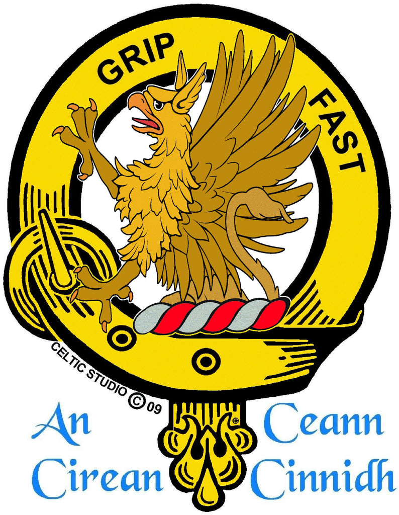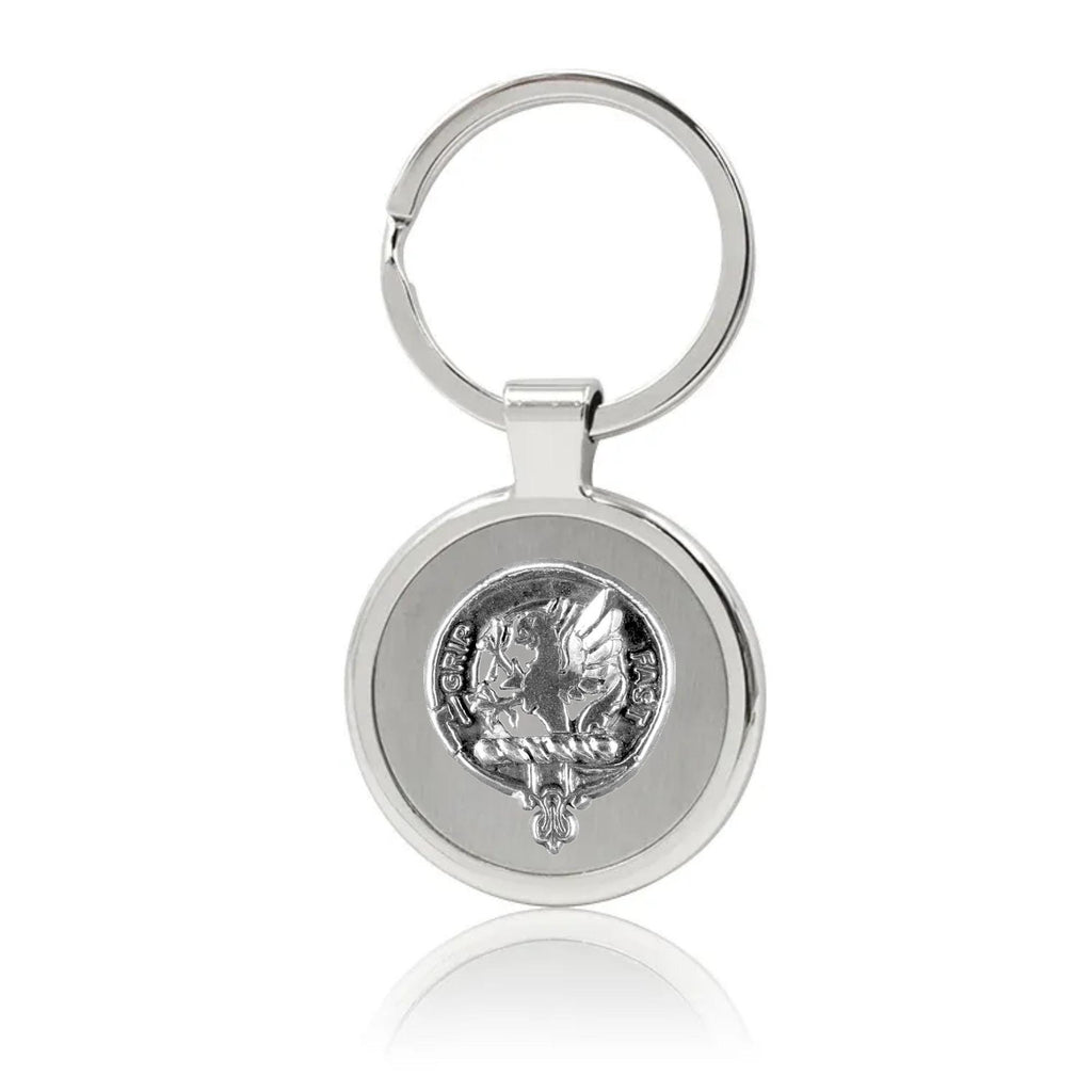 Your proud Scottish heritage can be displayed with this beautiful Clan crest stainless steel key ring. This Clan key ring is available with either a pewter or sterling silver Clan crest. The clan crest has been designed and manufactured entirely by Celtic Studio in Canada for generations.