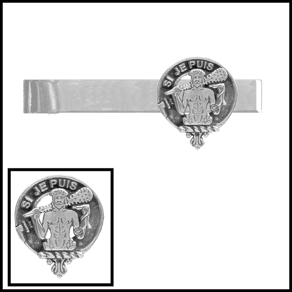 Your proud Scottish Clan heritage can be displayed by wearing your beautiful Scottish Clan clip tie bar. Each Clan tie bar is exquisitely handcrafted in high detail in lead free pewter or sterling silver and is mounted on a base metal tie bar. The Clan clip tie bar crest is 19.5 mm.