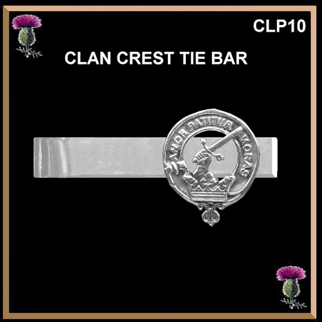 Your proud Scottish Clan heritage can be displayed by wearing your beautiful Scottish Clan clip tie bar. Each Clan tie bar is exquisitely handcrafted in high detail in lead free pewter or sterling silver and is mounted on a base metal tie bar. The Clan clip tie bar crest is 19.5 mm.