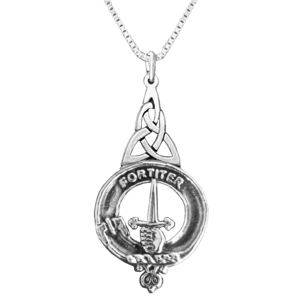 Your proud Scottish Clan heritage can be displayed through this beautiful Clan pendant. This exquisite Celtic interlace pendant is a beautifully elegant way to show your Clan crest.