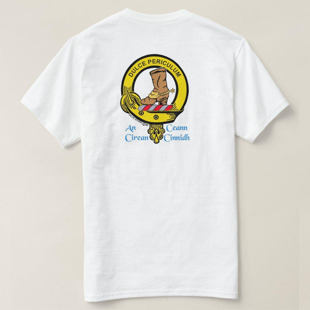Display your Scottish heritage with pride on one of our white t-shirts featuring your own full colour Clan crest. Made of 100% pre-shrunk heavy weight cotton, these are of superior quality.