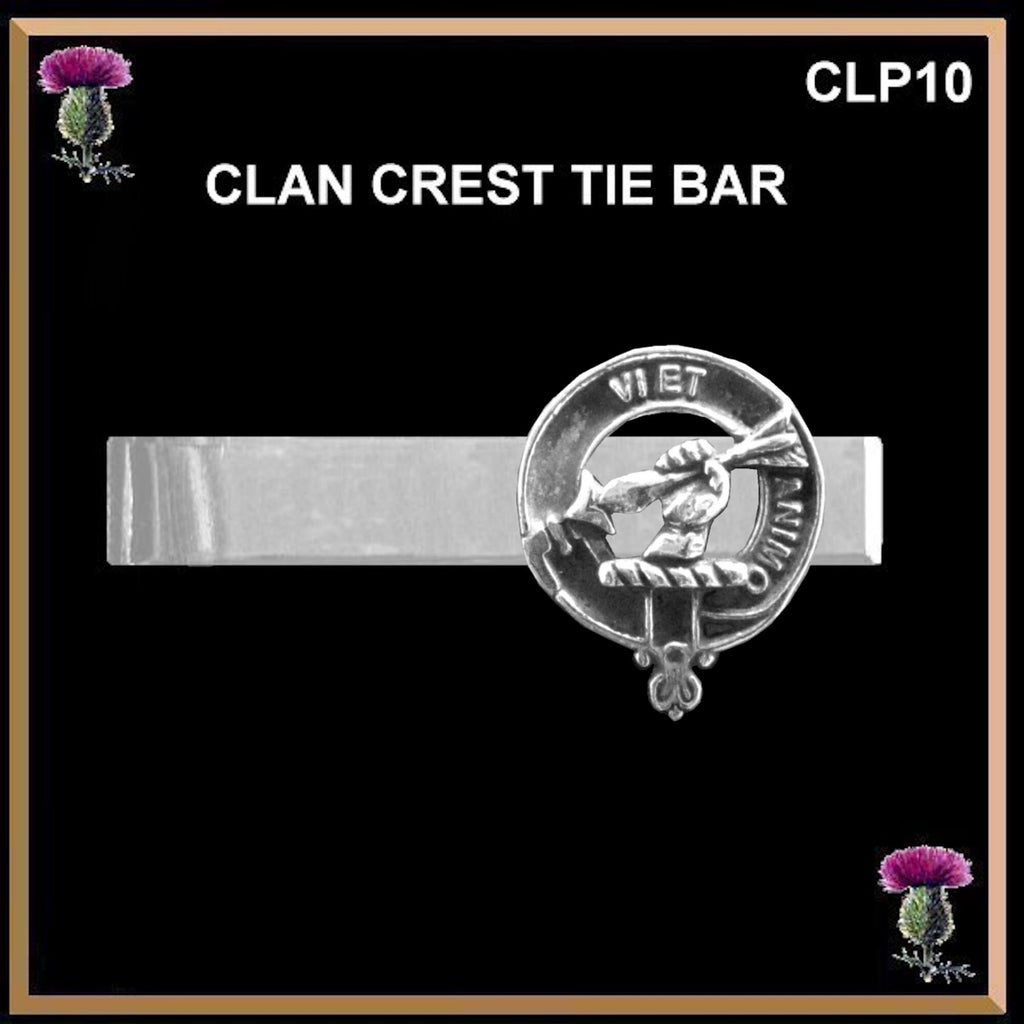 Your proud Scottish Clan heritage can be displayed by wearing your beautiful Scottish Clan clip tie bar. Each Clan tie bar is exquisitely handcrafted in high detail in lead free pewter or sterling silver and is mounted on a base metal tie bar. The Clan clip tie bar crest is 19.5 mm.