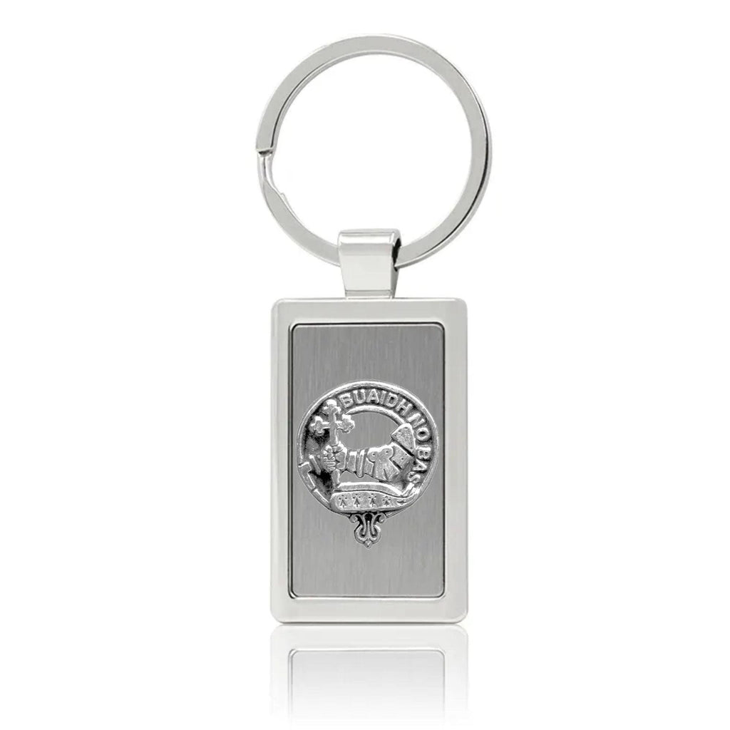 Your proud Scottish heritage can be displayed with this beautiful Clan crest stainless steel key ring. This Clan key ring is available with either a pewter or sterling silver Clan crest. The clan crest has been designed and manufactured entirely by Celtic Studio in Canada for generations.