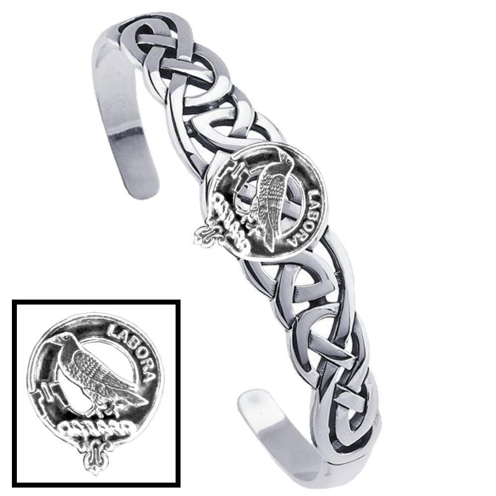 A superb high quality Celtic Interlace cuff bracelet with your Clan Crest solidly made in solid sterling silver. The bracelet is created with an intricate Celtic weave pattern. This attractive bracelet fits any wrist size. A great way to display your unique Clan affiliation or just because you love everything Celtic! All Clans are available. The Celtic Interlace design is the symbol of eternal life or all things that last forever! Like love for that special person in your life.