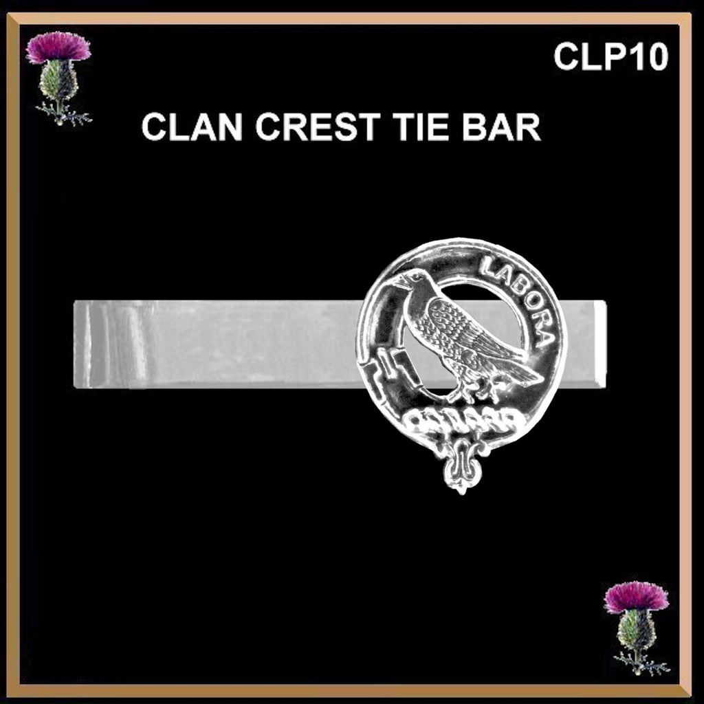 Your proud Scottish Clan heritage can be displayed by wearing your beautiful Scottish Clan clip tie bar. Each Clan tie bar is exquisitely handcrafted in high detail in lead free pewter or sterling silver and is mounted on a base metal tie bar. The Clan clip tie bar crest is 19.5 mm.