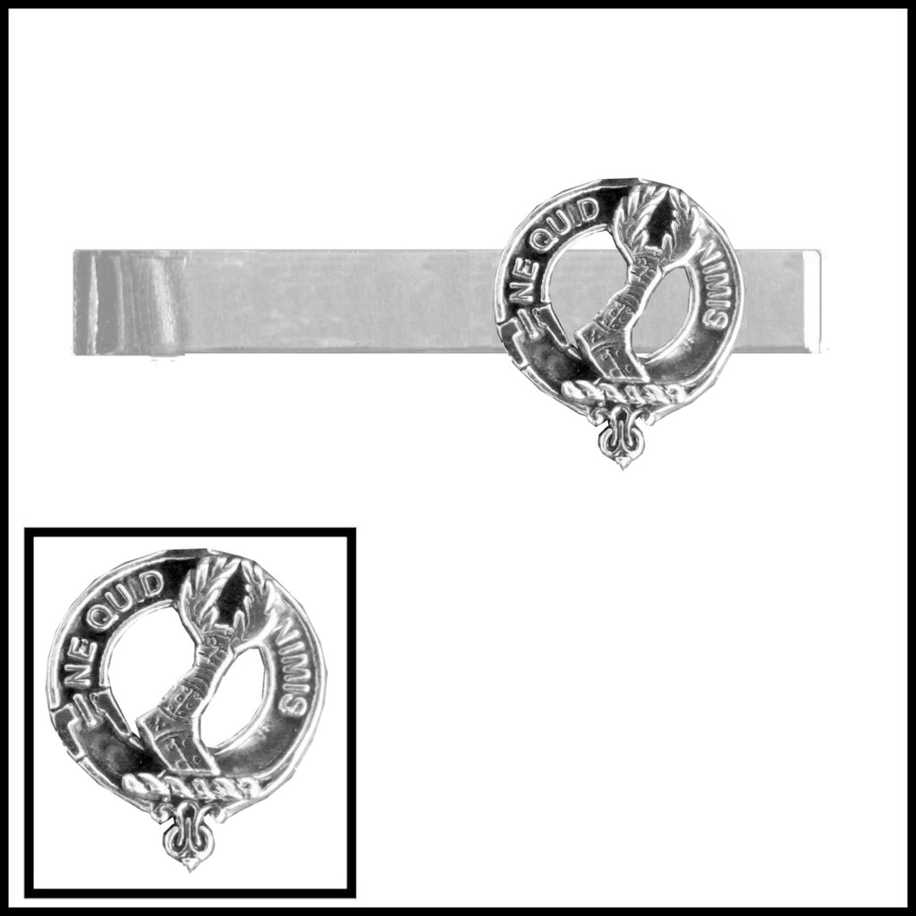 Your proud Scottish Clan heritage can be displayed by wearing your beautiful Scottish Clan clip tie bar. Each Clan tie bar is exquisitely handcrafted in high detail in lead free pewter or sterling silver and is mounted on a base metal tie bar. The Clan clip tie bar crest is 19.5 mm.