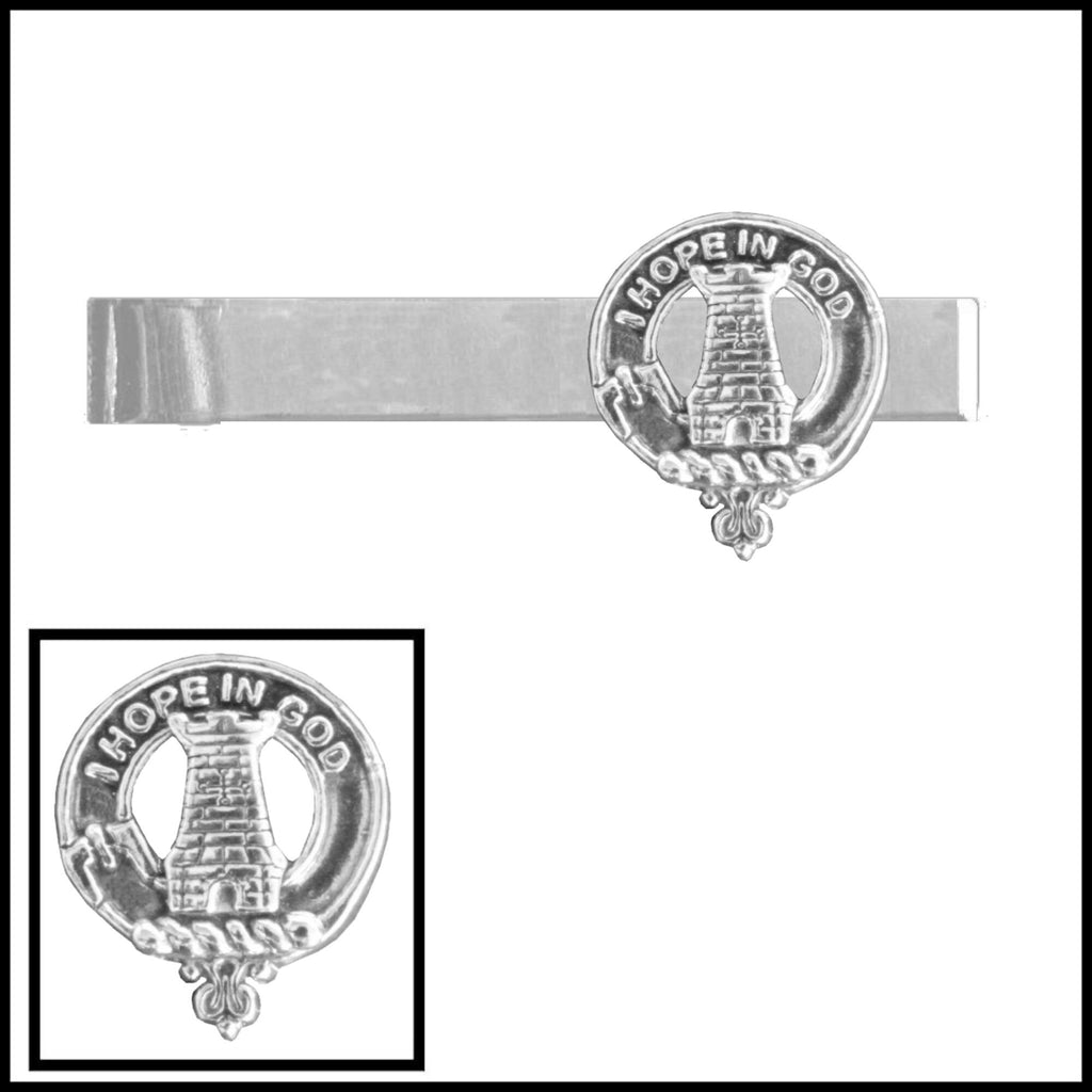 Your proud Scottish Clan heritage can be displayed by wearing your beautiful Scottish Clan clip tie bar. Each Clan tie bar is exquisitely handcrafted in high detail in lead free pewter or sterling silver and is mounted on a base metal tie bar. The Clan clip tie bar crest is 19.5 mm.