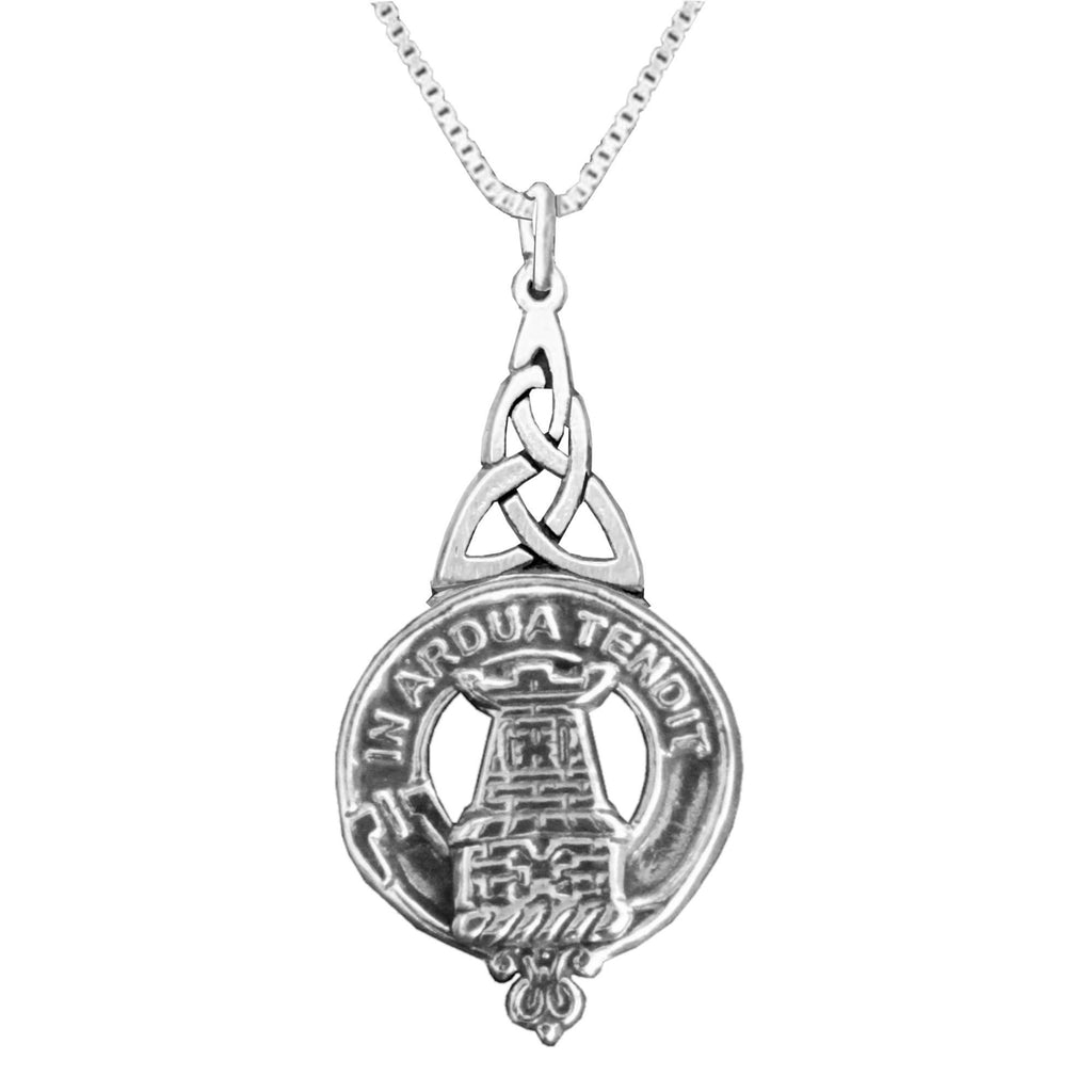 Your proud Scottish Clan heritage can be displayed through this beautiful Clan pendant. This exquisite Celtic interlace pendant is a beautifully elegant way to show your Clan crest.