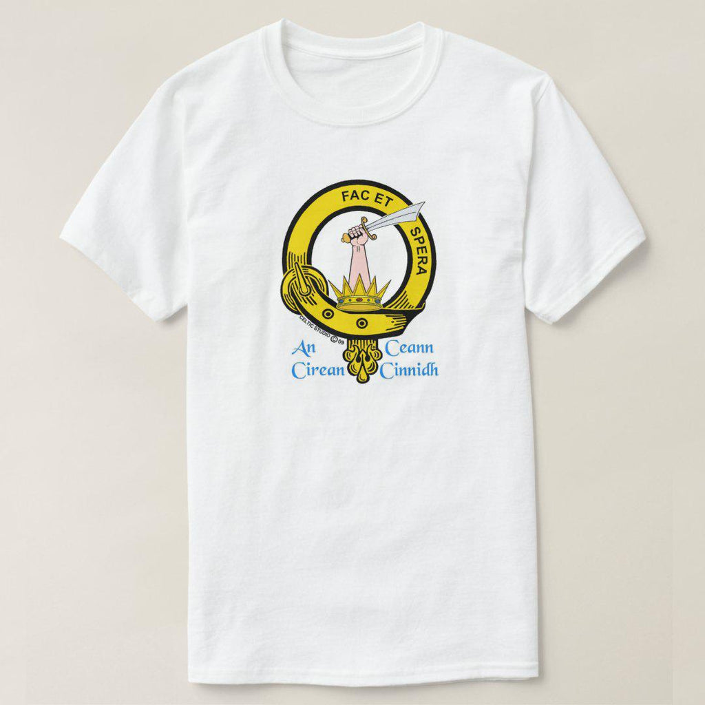 Display your Scottish heritage with pride on one of our white t-shirts featuring your own full colour Clan crest. Made of 100% pre-shrunk heavy weight cotton, these are of superior quality.