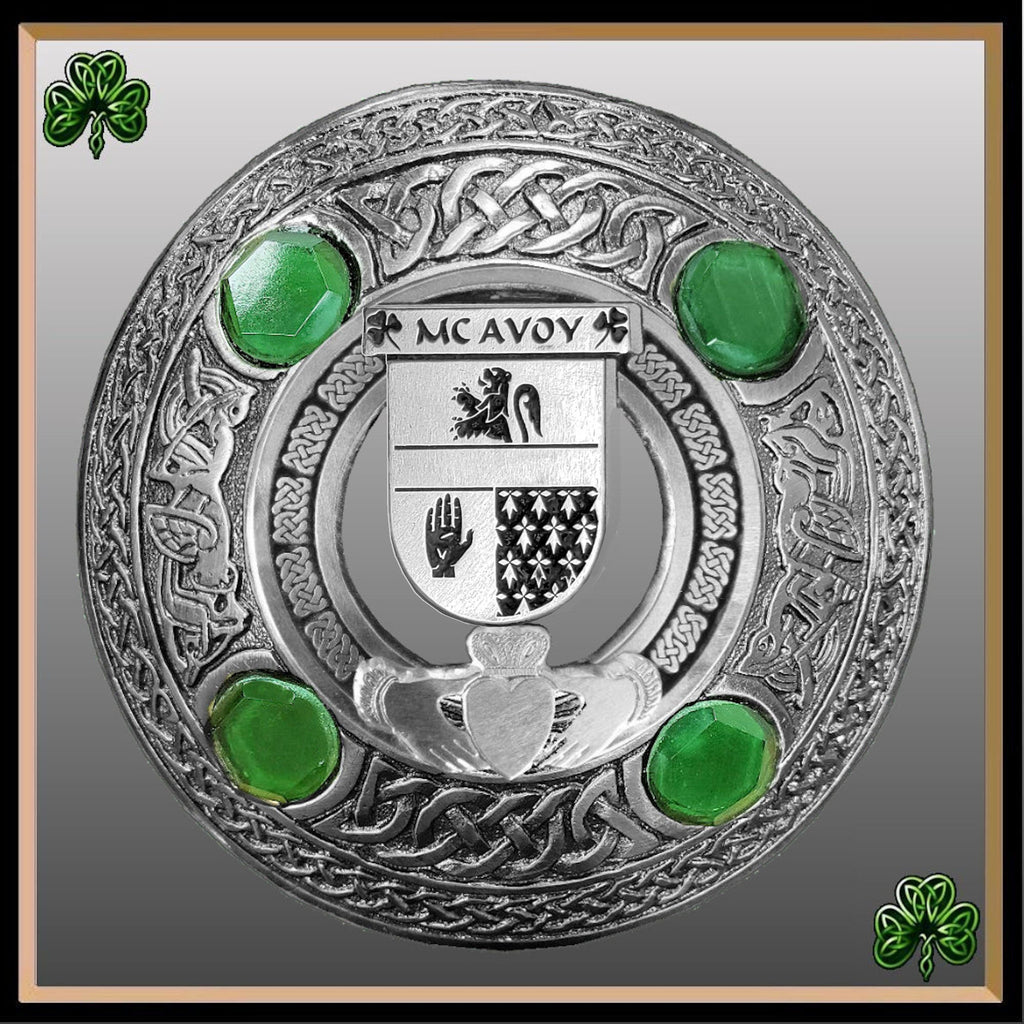McAvoy Irish Claddagh Coat of Arms Plaid brooch ~ Emerald stones