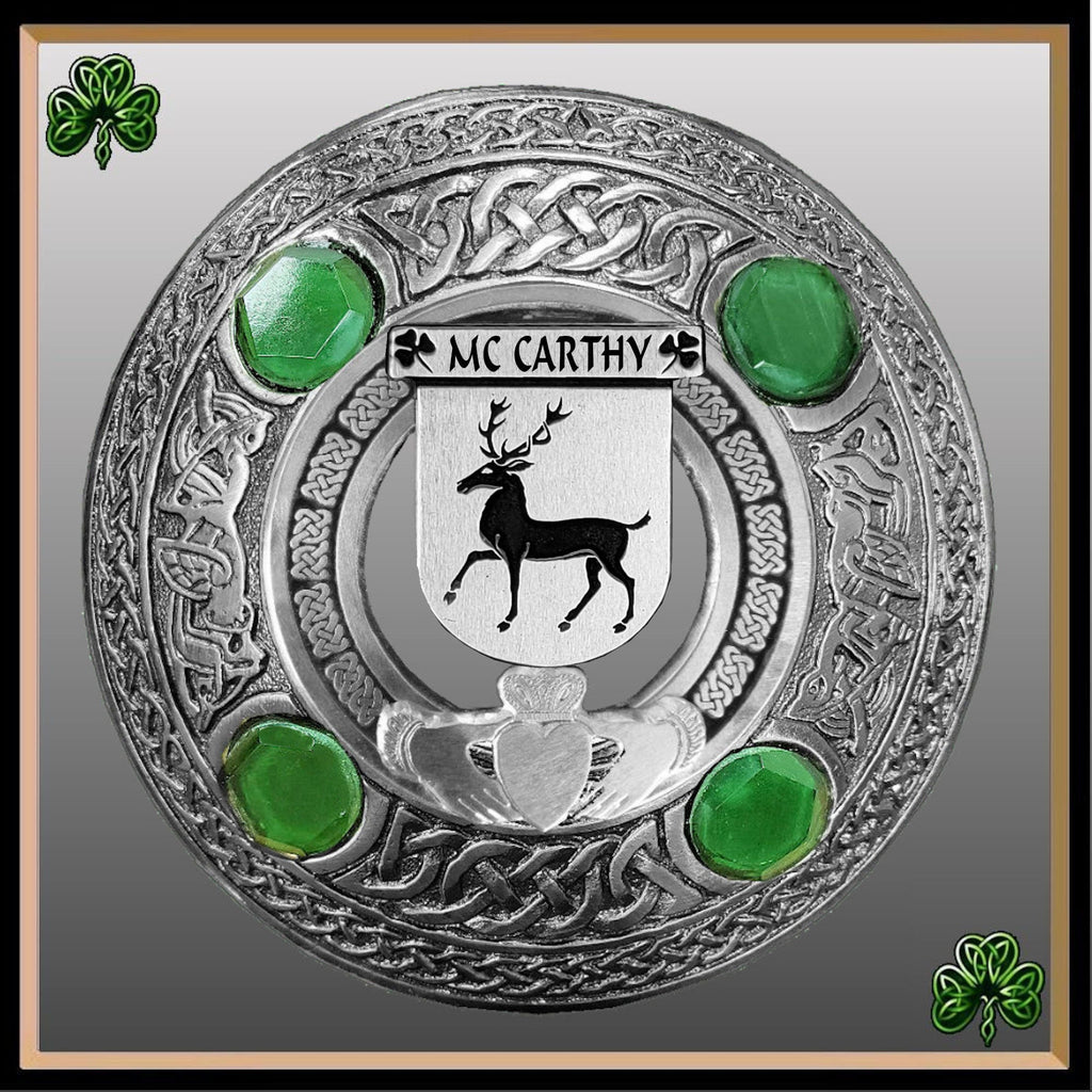McCarthy Irish Claddagh Coat of Arms Plaid brooch ~ Emerald stones
