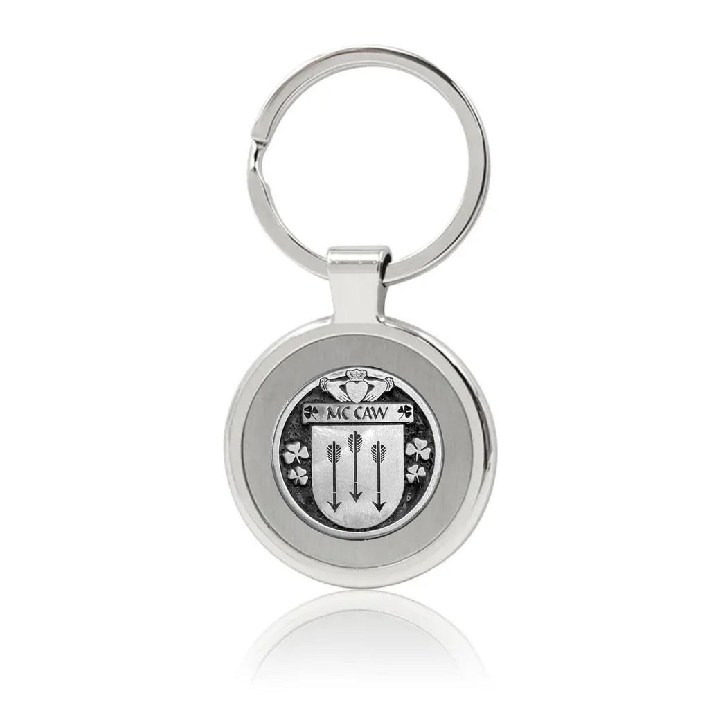 Your proud Irish heritage can be displayed with this beautiful Irish Coat of Arms stainless steel key ring. This Clan key ring is available with either a pewter or sterling silver Clan crest. The clan crest has been designed and manufactured entirely by Celtic Studio in Canada for generations!