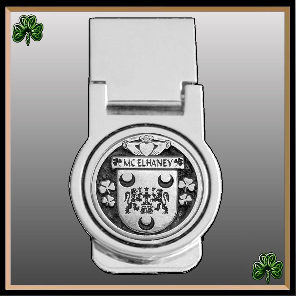 McElhaney Irish Disk Coat of Arms Round Money Clip