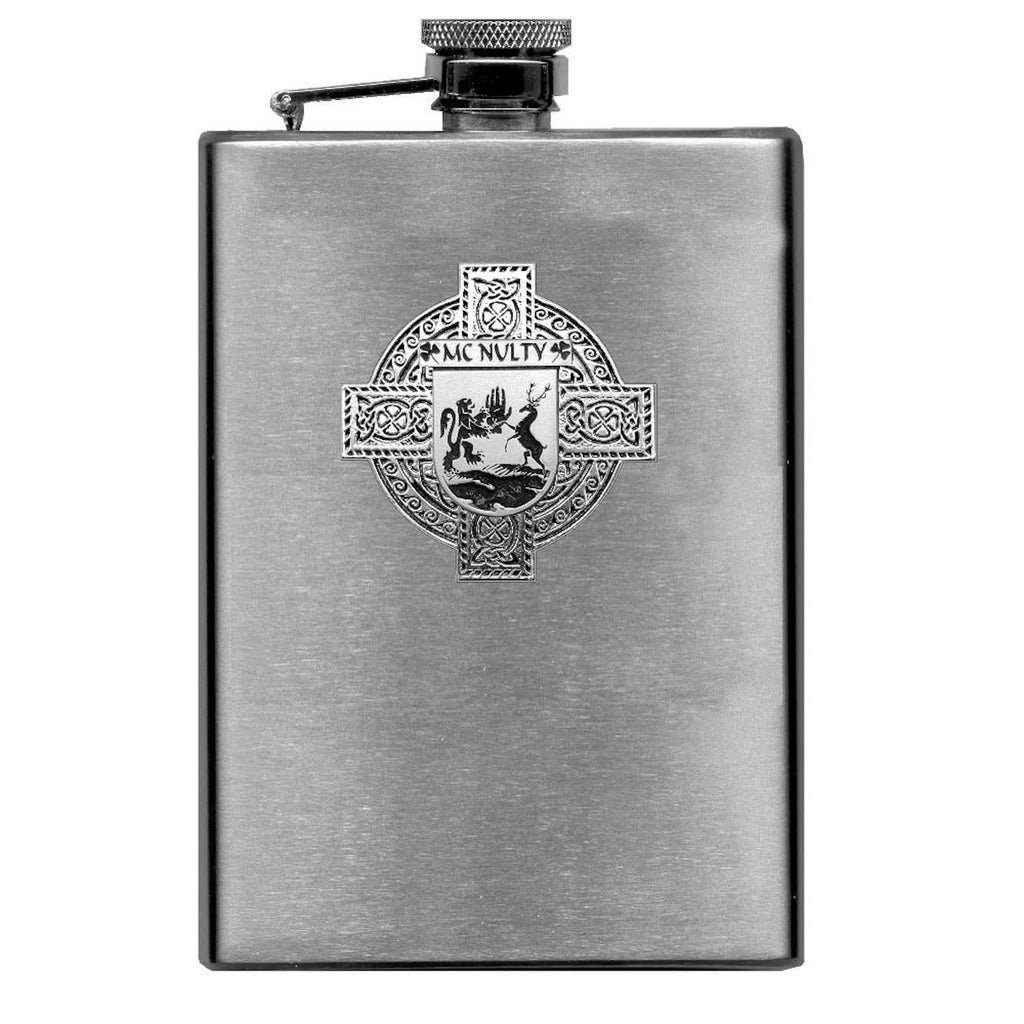 McNulty Irish Celtic Cross Badge 8 oz. Flask Green, Black or Stainless