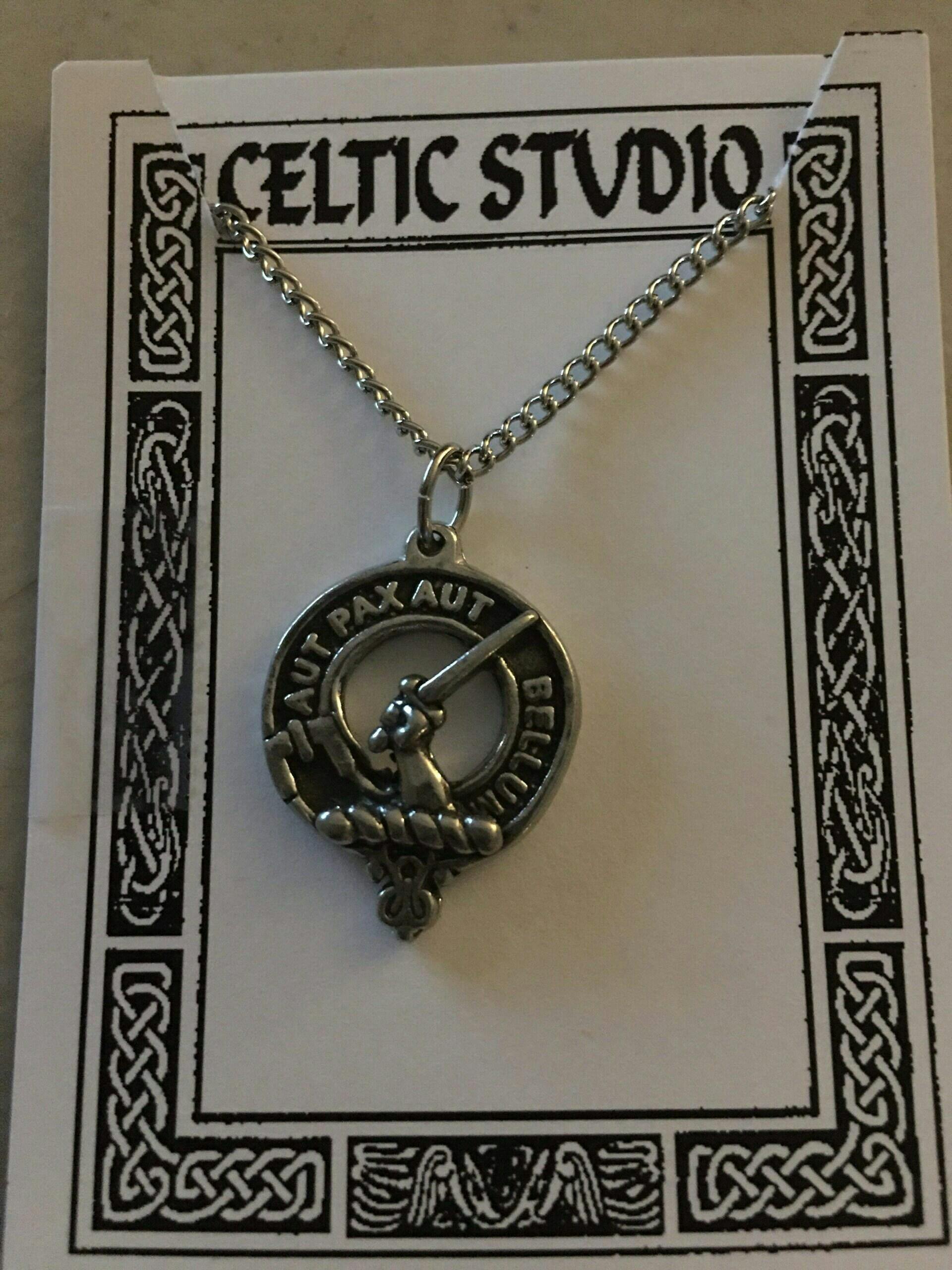 Your proud Scottish Clan heritage can be displayed by wearing your beautiful Scottish Clan pendant. Select from lead free pewter, sterling silver or solid karat gold. White gold is also available.