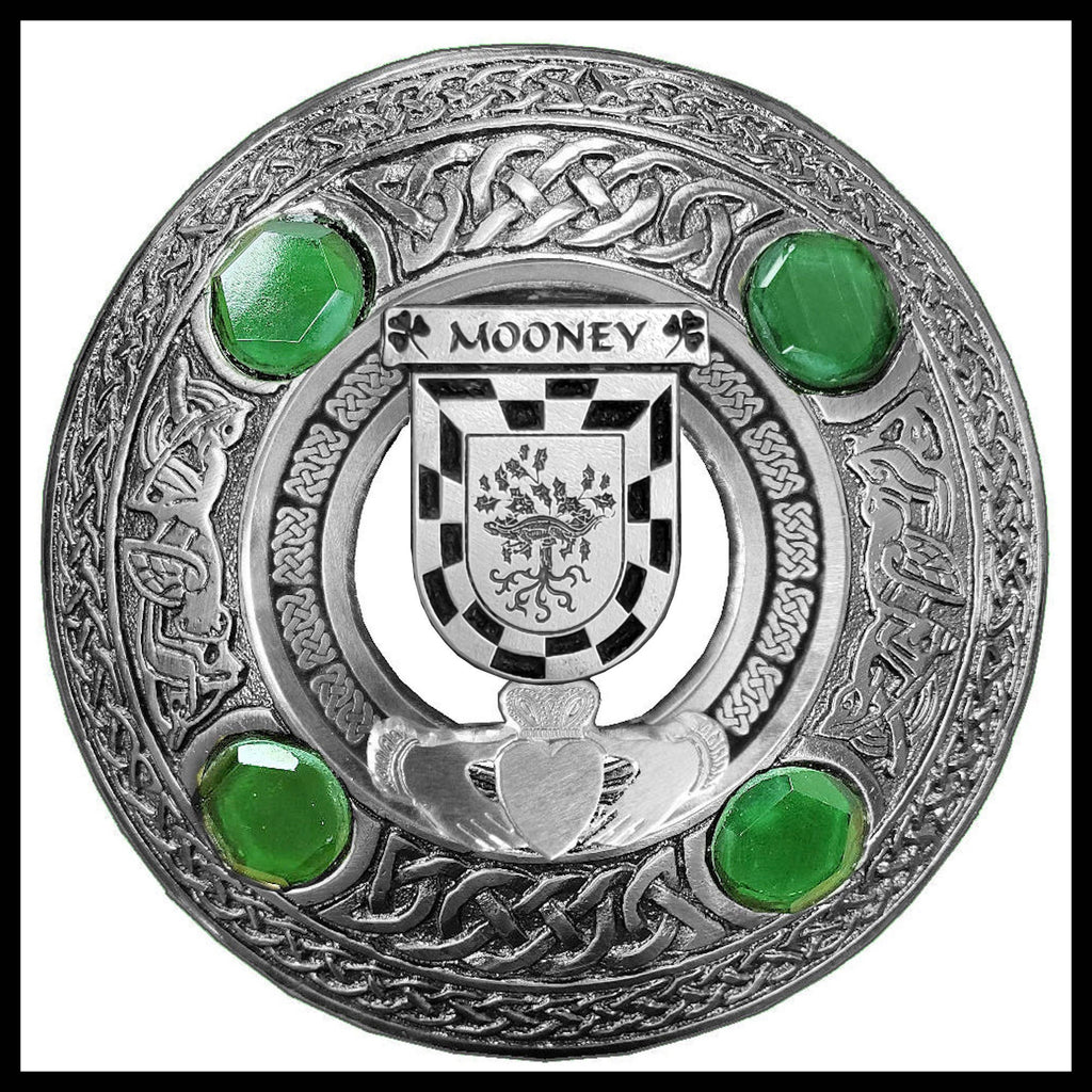 Mooney Irish Claddagh Coat of Arms Plaid brooch ~ Emerald stones