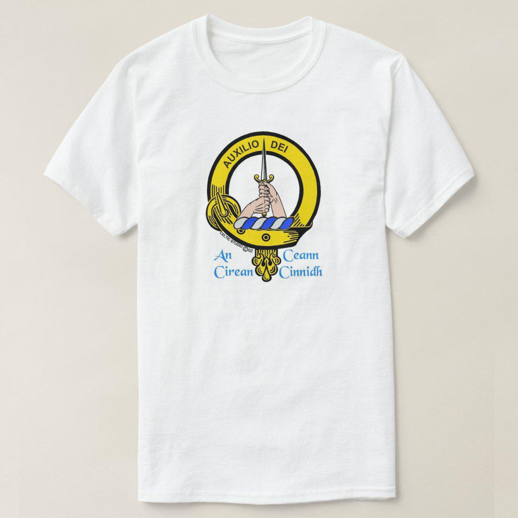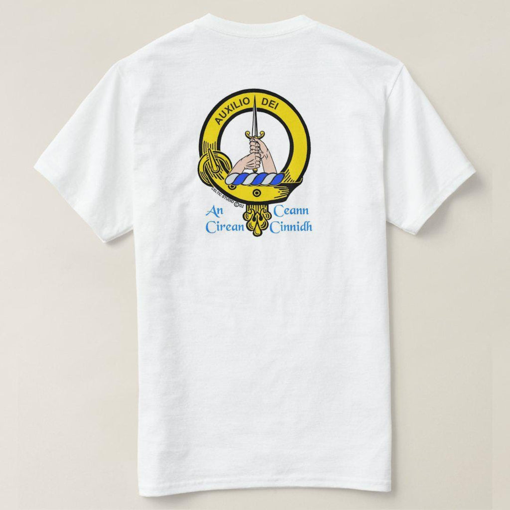 Display your Scottish heritage with pride on one of our white t-shirts featuring your own full colour Clan crest. Made of 100% pre-shrunk heavy weight cotton, these are of superior quality.