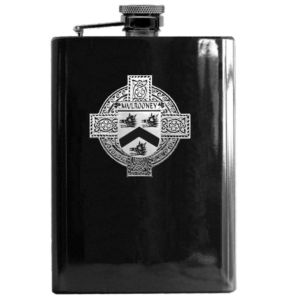 Mulrooney Irish Celtic Cross Badge 8 oz. Flask Green, Black or Stainless