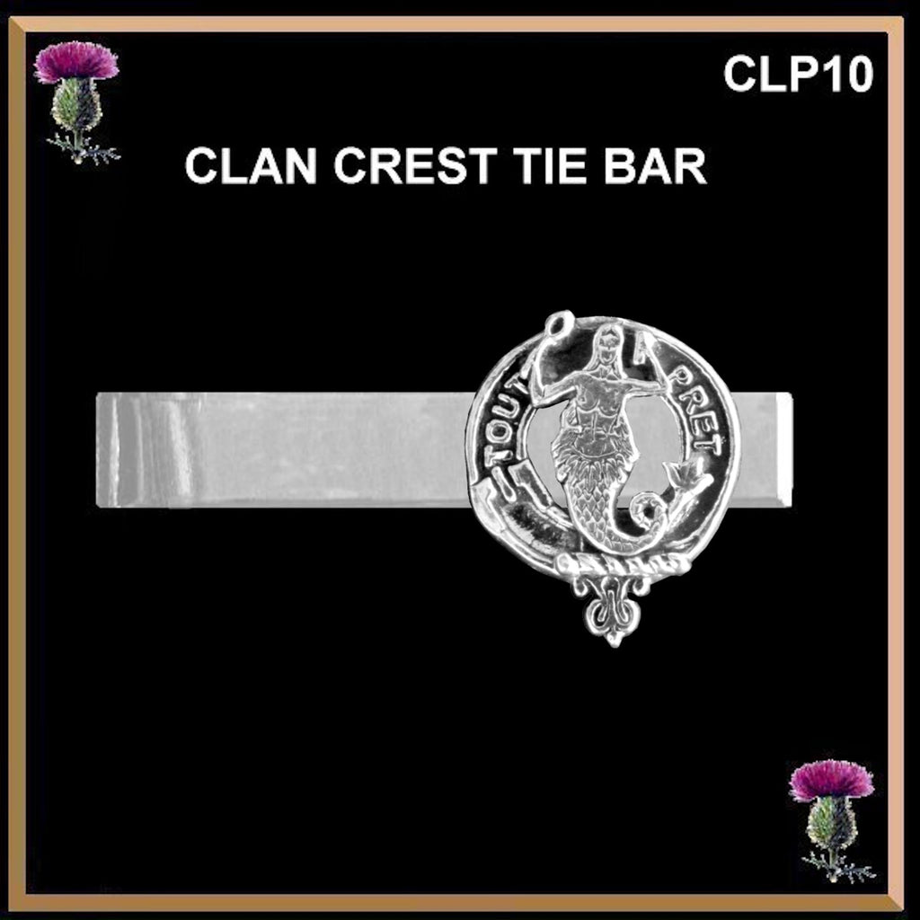 Your proud Scottish Clan heritage can be displayed by wearing your beautiful Scottish Clan clip tie bar. Each Clan tie bar is exquisitely handcrafted in high detail in lead free pewter or sterling silver and is mounted on a base metal tie bar. The Clan clip tie bar crest is 19.5 mm.
