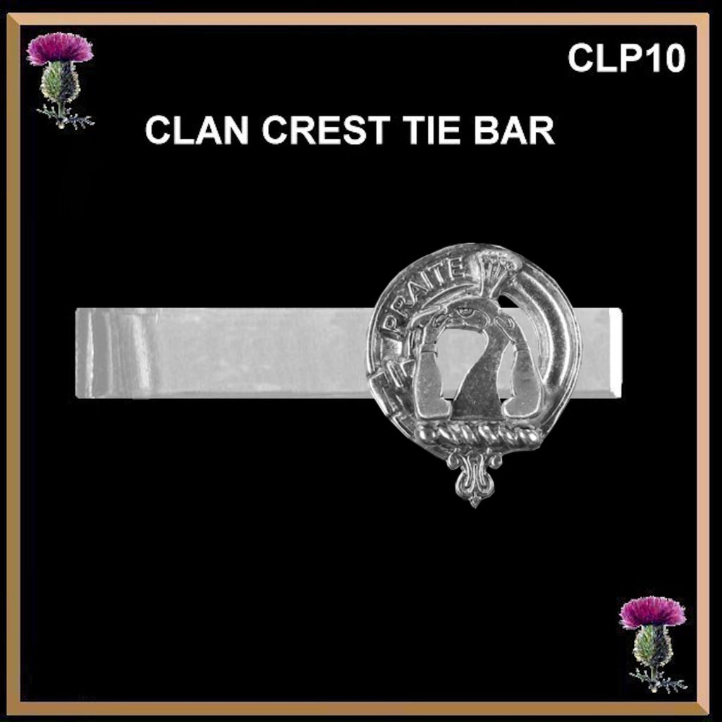 Your proud Scottish Clan heritage can be displayed by wearing your beautiful Scottish Clan clip tie bar. Each Clan tie bar is exquisitely handcrafted in high detail in lead free pewter or sterling silver and is mounted on a base metal tie bar. The Clan clip tie bar crest is 19.5 mm.