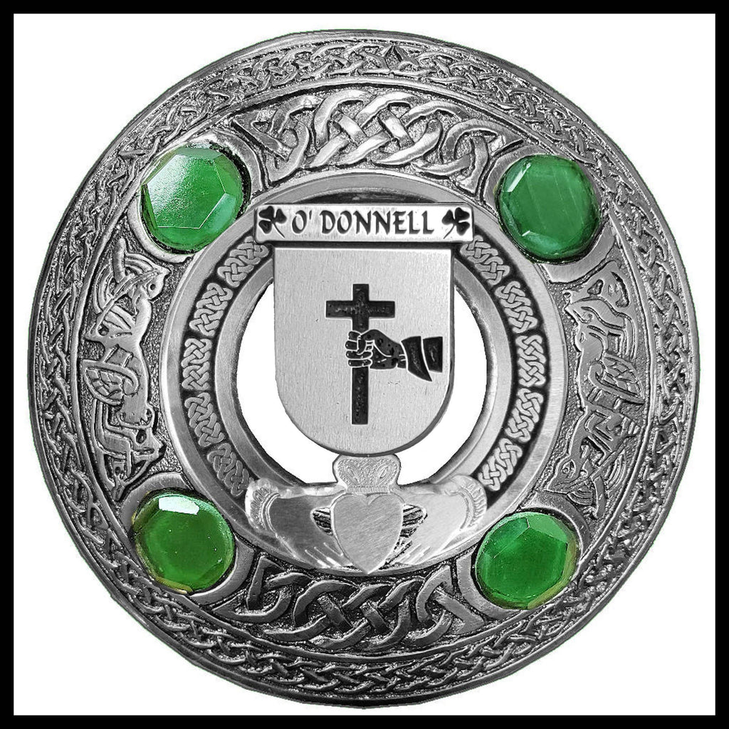 O'Donnell Irish Claddagh Coat of Arms Plaid brooch ~ Emerald stones