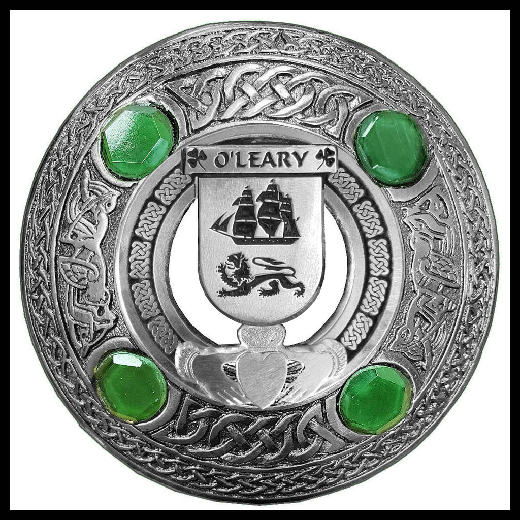 O'Leary Irish Claddagh Coat of Arms Plaid brooch ~ Emerald stones