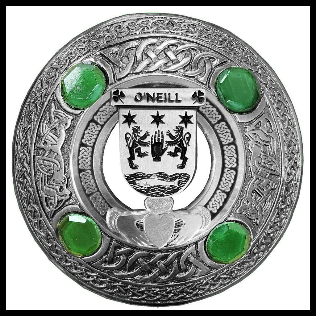 O'Neill Irish Claddagh Coat of Arms Plaid brooch ~ Emerald stones