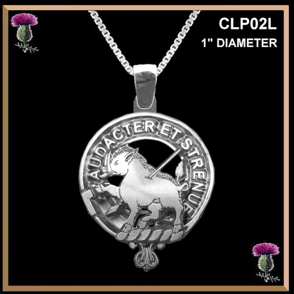 Pollock Large 1" Scottish Clan Crest Pendant - Sterling Silver