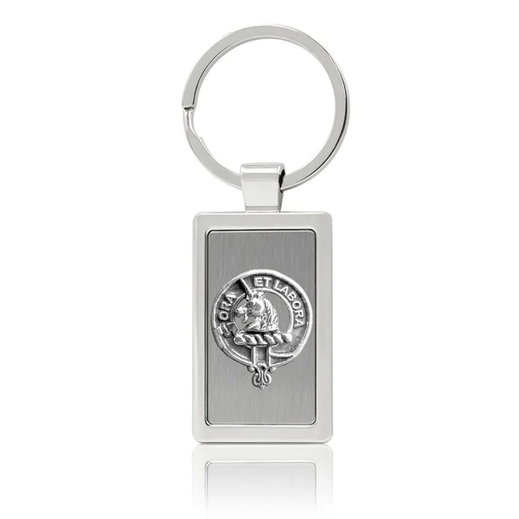 Your proud Scottish heritage can be displayed with this beautiful Clan crest stainless steel key ring. This Clan key ring is available with either a pewter or sterling silver Clan crest. The clan crest has been designed and manufactured entirely by Celtic Studio in Canada for generations.