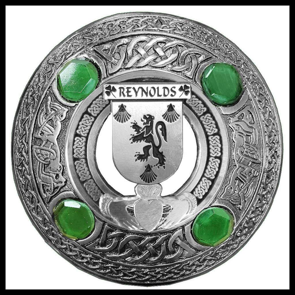 Reynolds Irish Claddagh Coat of Arms Plaid brooch ~ Emerald stones