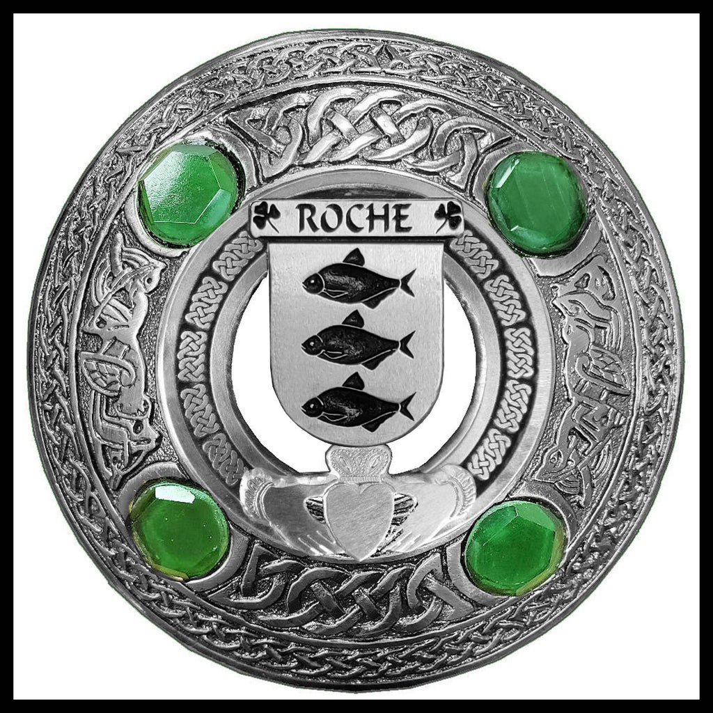 Roche Irish Claddagh Coat of Arms Plaid brooch ~ Emerald stones